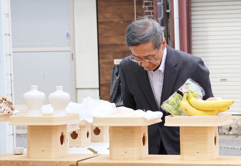 今まで大切な役割を果たした御印章に感謝の意を込めて天孫神社の宮司さまに祝詞を読み上げていただきました。